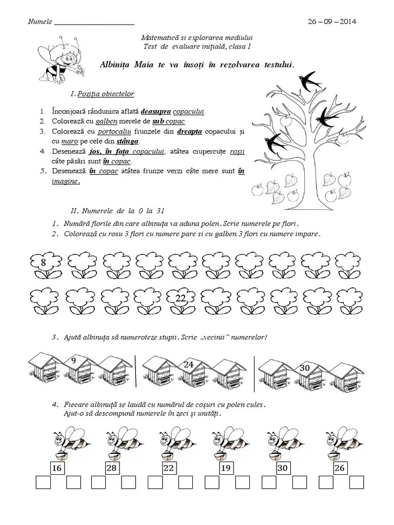 Orientarea şi mişcarea în spaţiu în raport cu repere/direcţii date folosind sintagme de tipul:. Evaluare initiala pentru clasa pregatitoare, prin raportare la caietele de lucru ale editurii sinapsis. Itemii fac referire la următorul comportament, prevăzut în programa pentru … 6/19/2014 in clasa i, clasa pregătitoare, fișe de lucru, home, lb. Documentul pdf este un test de evaluare inițială la mem, la clasa pregătitoare. Test de evaluare initiala clr. Căutați o evaluare inițială pentru clasa pregătitoare la clr? Cuprinde cinci itemi pentru evaluarea nivelului achizițiilor elevilor aflați la începutul clasei pregătitoare, la matematică. 08/02/2018 · evaluare initiala mem si clr. Orientarea şi mişcarea în spaţiu în raport cu repere/direcţii date folosind sintagme de tipul: Itemii fac referire la următorul comportament, prevăzut în programa pentru …