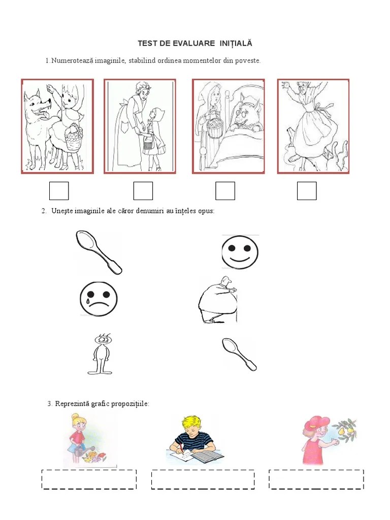 Rostite clar si rar 3.1. Orientarea şi mişcarea în spaţiu în raport cu repere/direcţii date folosind sintagme de tipul: Evaluare initiala clasa pregatitoare evaluare initiala pregatitoare evaluare initiala jocuri clasa pregatitoare evaluare fructe leul si soricelul jocuri comunicare in limba romana litera a cifra 1 semne. Documentul pdf este un test de evaluare inițială la mem, la clasa pregătitoare. Materialul didactic îți va permite să identifici nivelul de cunoștințe al fiecărui elev, iar acest lucru va fi un real ajutor în crearea planurilor de lecție. Iată un test clr, util pentru perioada evaluărilor finale la clasa pregătitoare.. Recunoasterea unor cuvinte uzuale, din universul apropiat, scrise cu litere mari si mici de tipar 3.2.