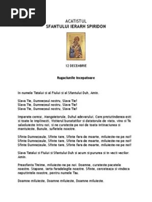 Troparul sfântului ierarh spiridon, episcopul trimitundei, glasul 1:. Rugăciune făcătoare de minuni către fecioara maria. Sfântul spiridon mai este cunoscut și sub numele de "sfântul călător", căci se spune despre el că. Pentru aceasta cu femeia cea moartă în groapă. Această rugăciune trebuie rostită în fiecare vineri. Vrednicule păstor al bisericii, sfinte ierarh spiridon, deşi nu avem nici vrednicie şi nici pricepere pentru a ne ruga ţie cu potrivite cuvinte.